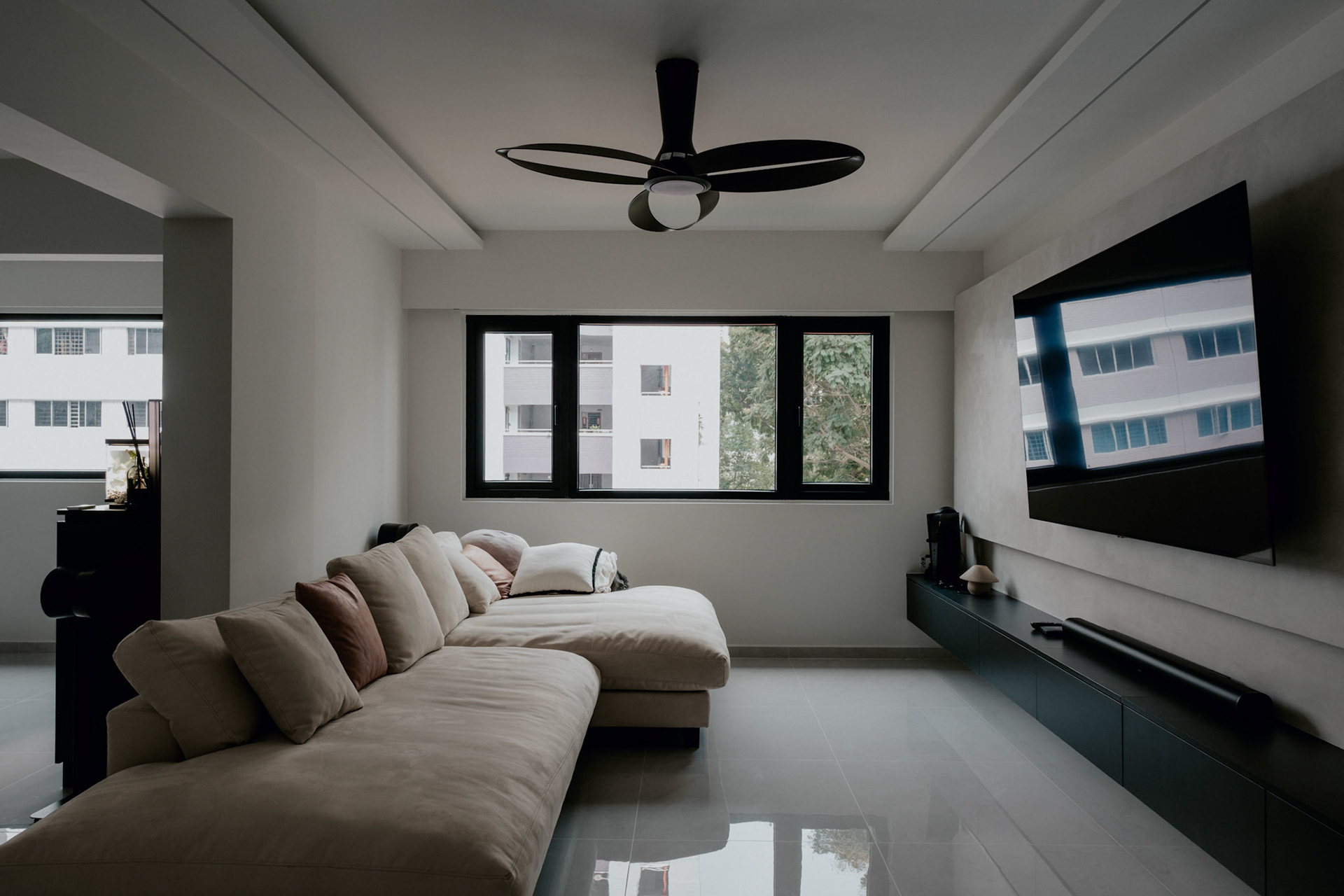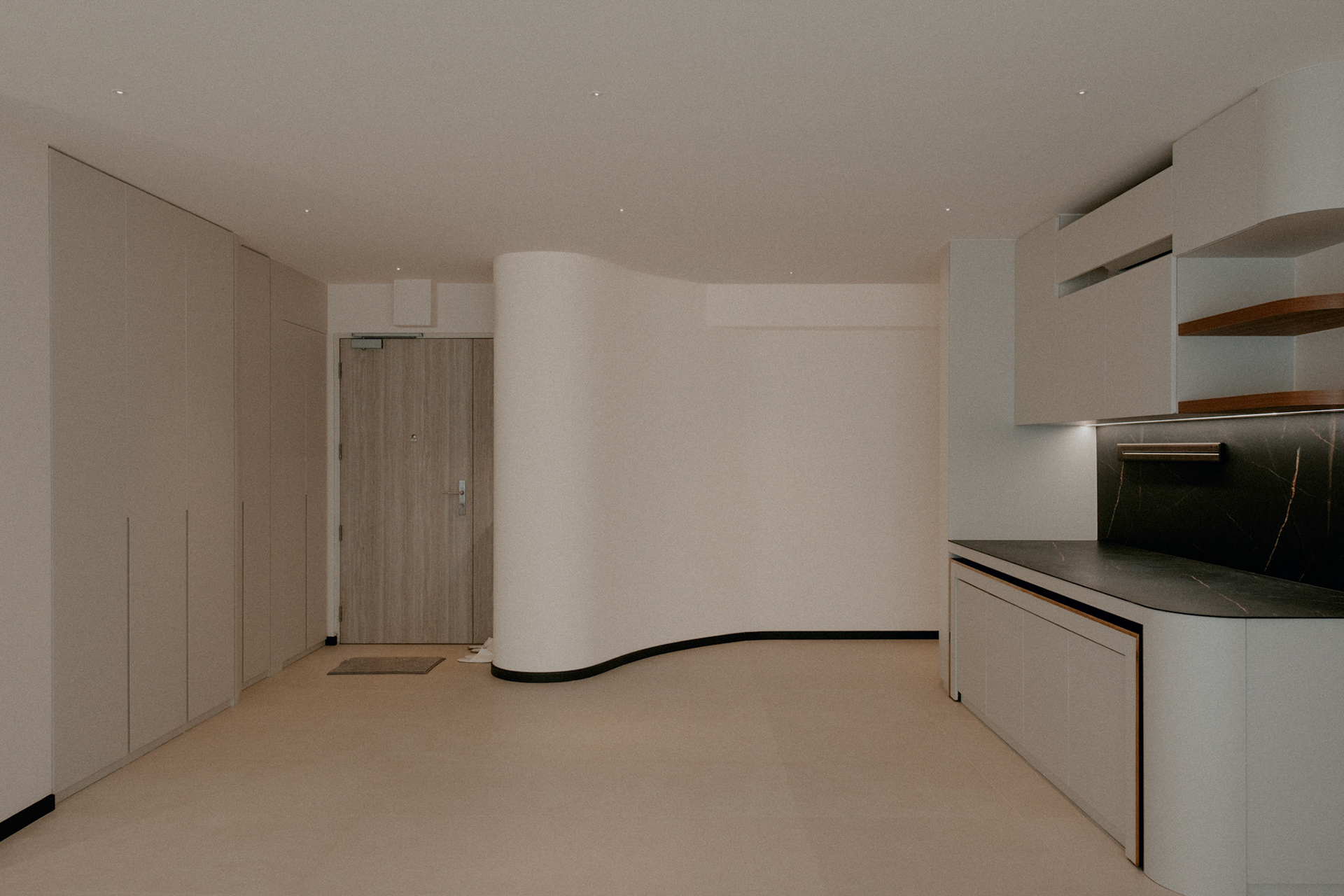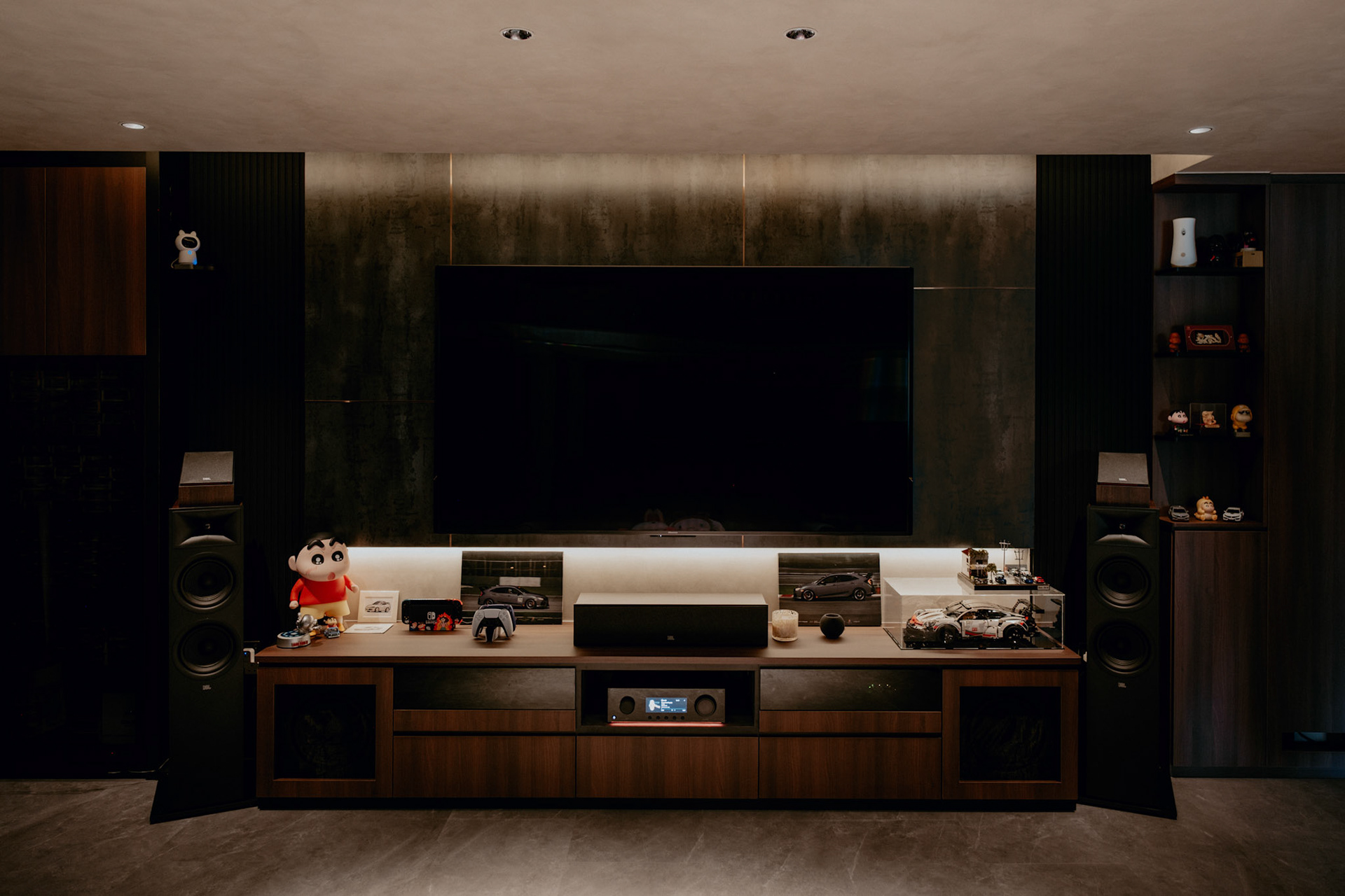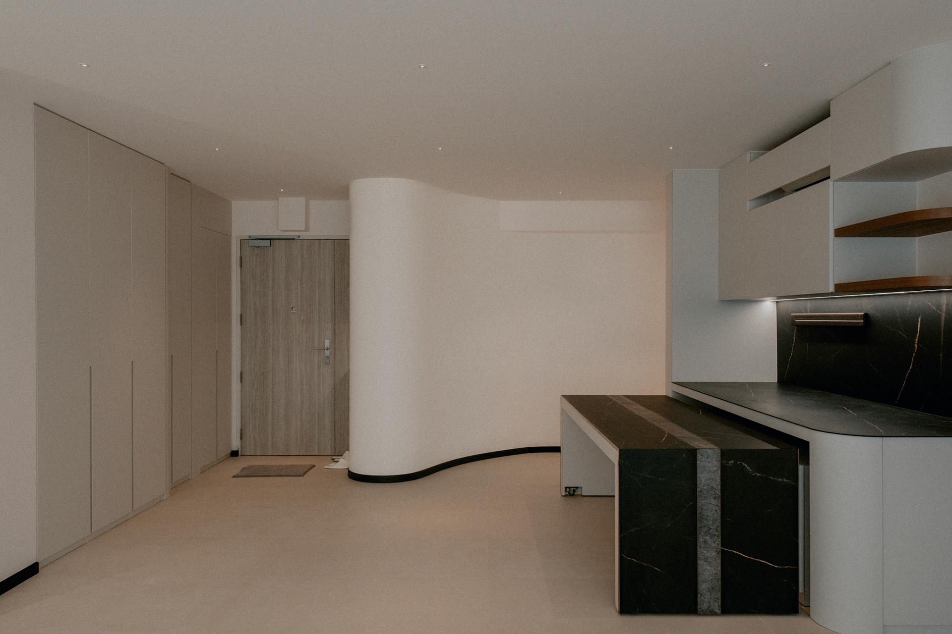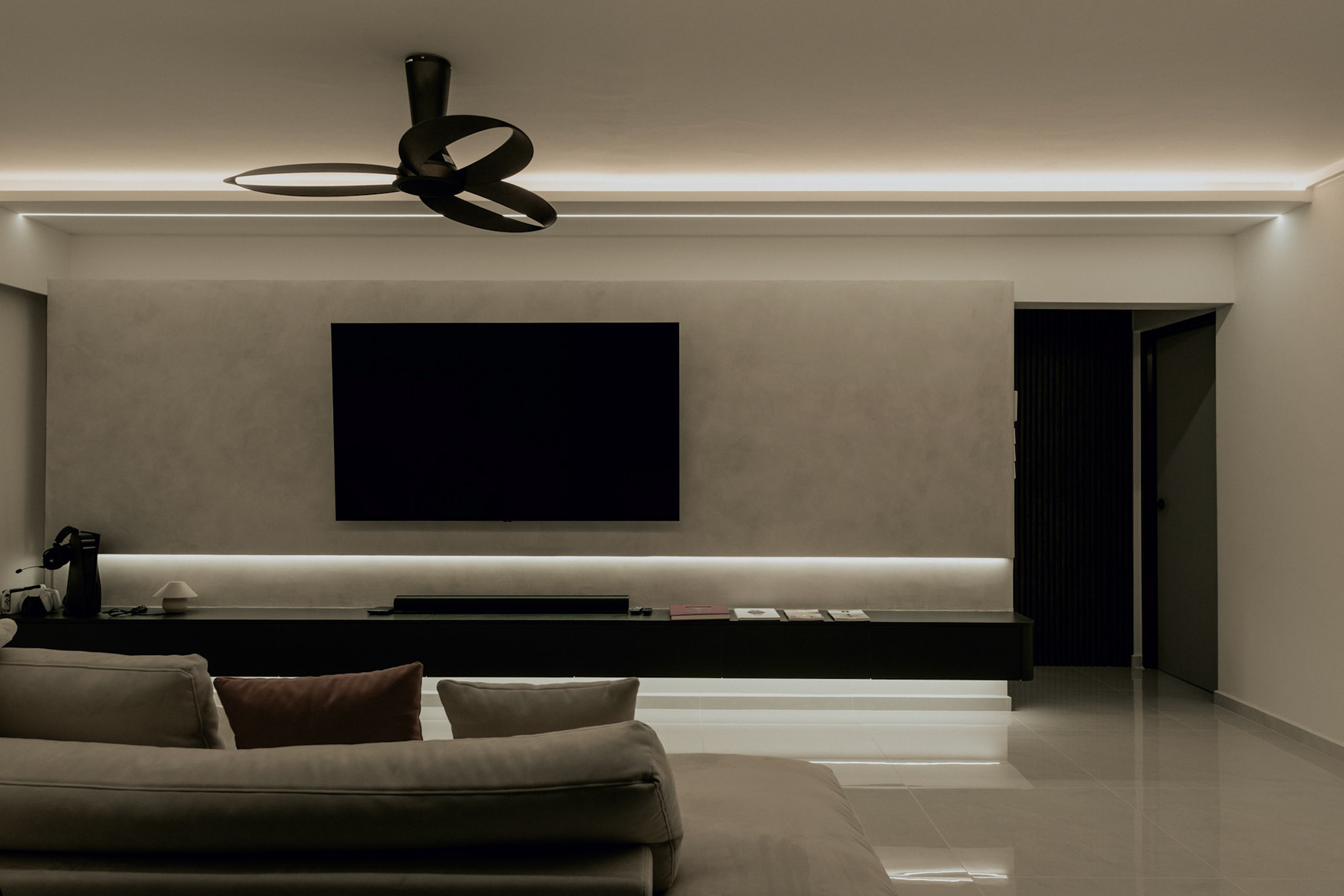 We balance showcasing the full space for portfolios while preserving the designer’s intended mood for marketing.