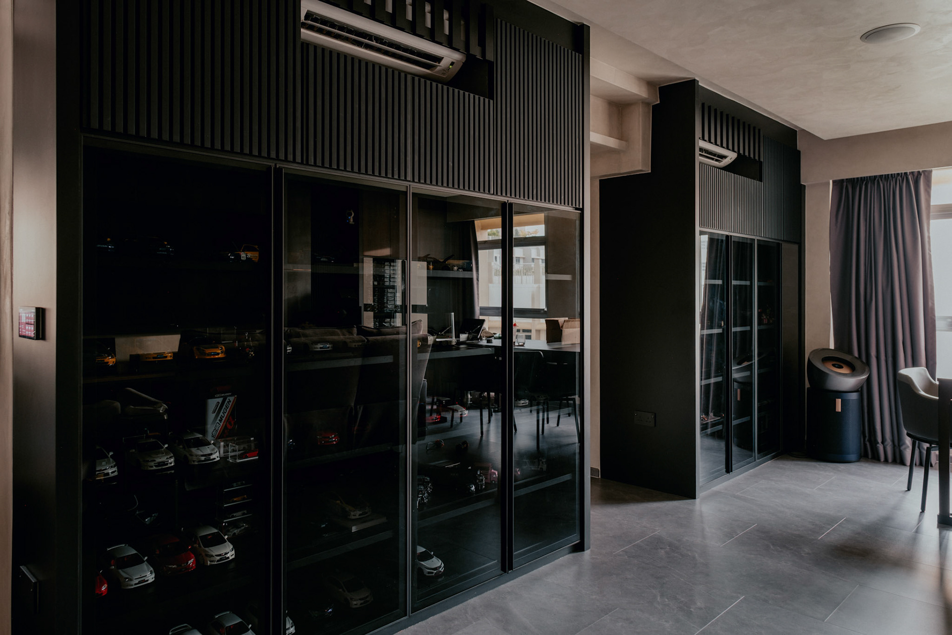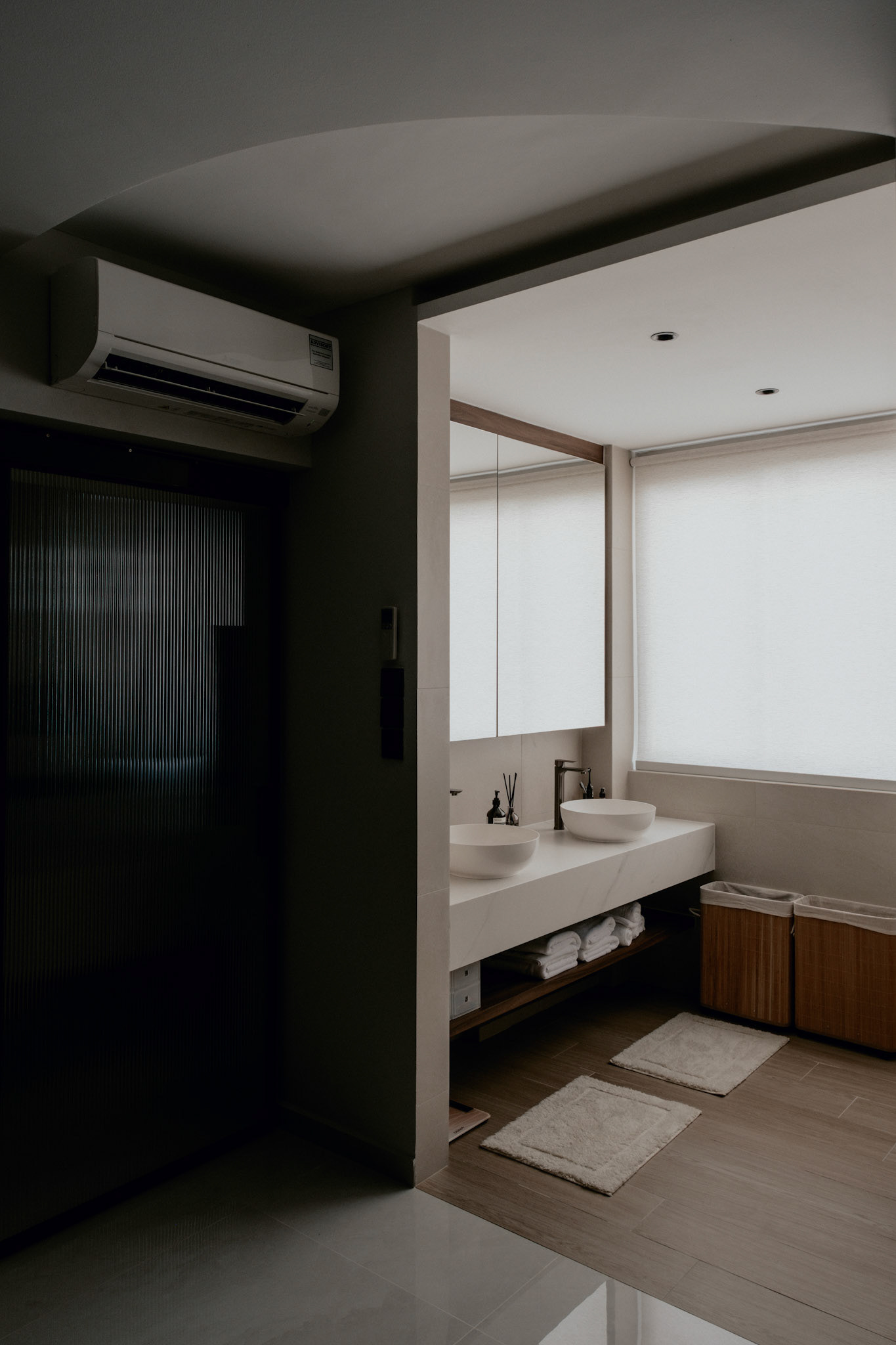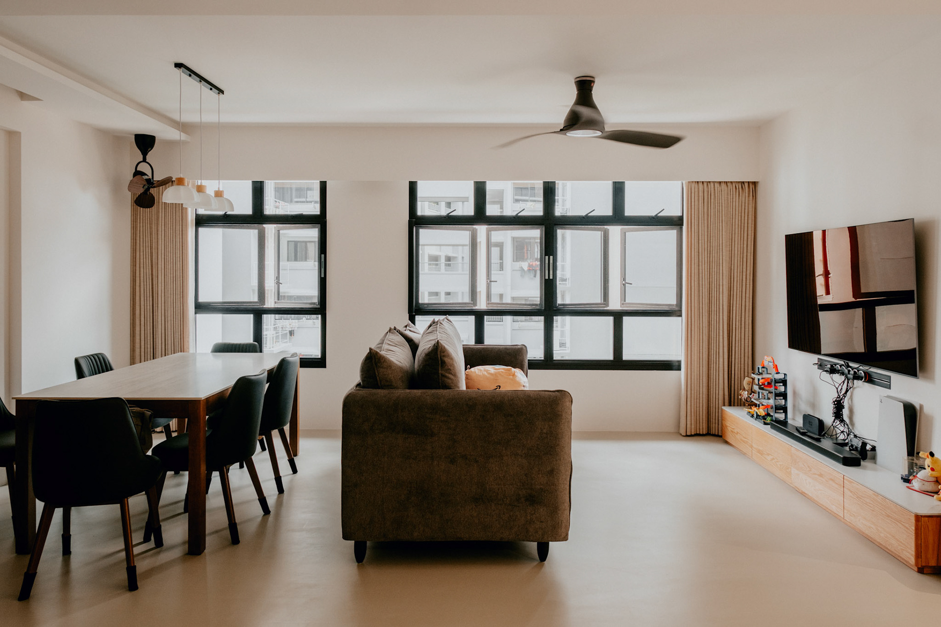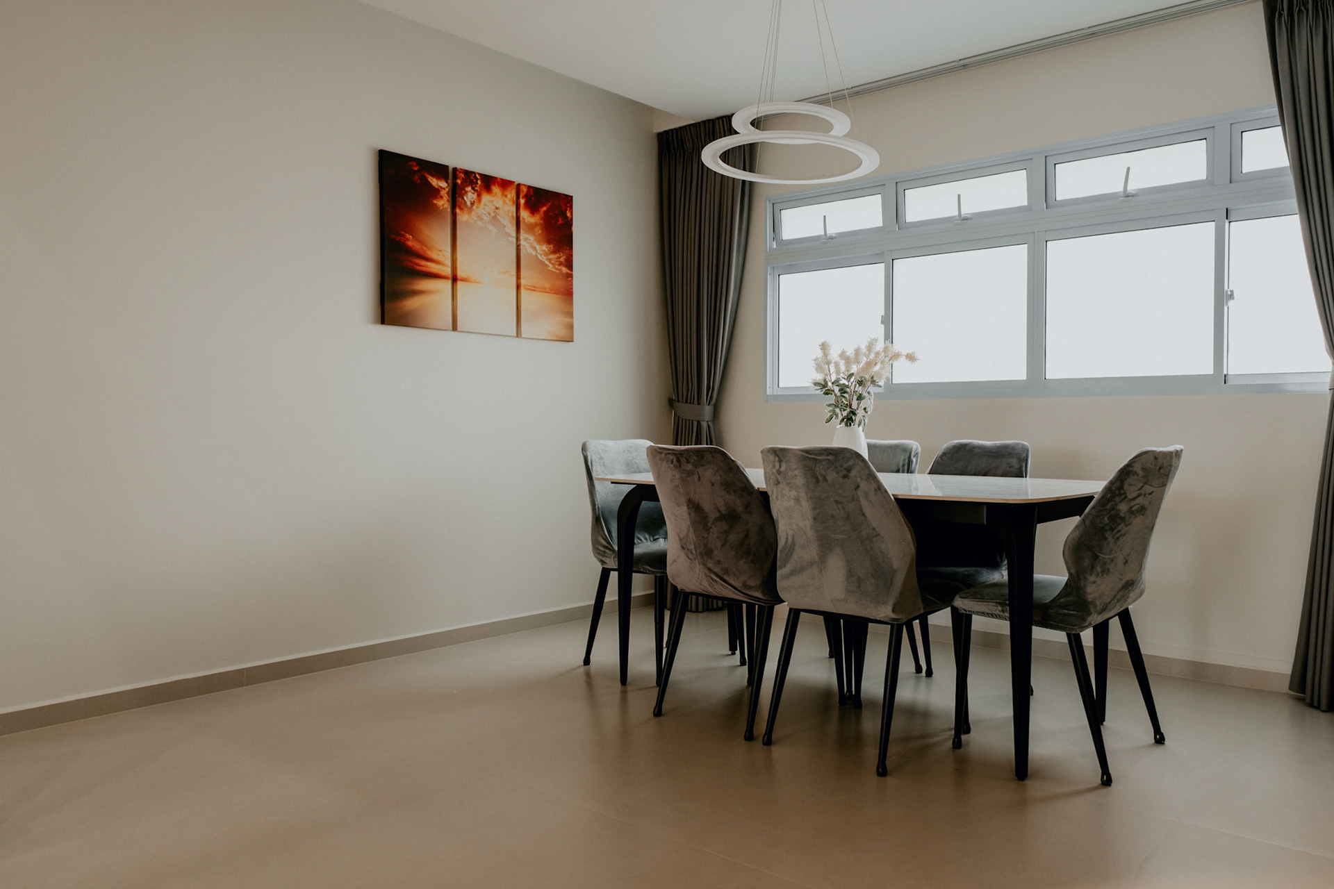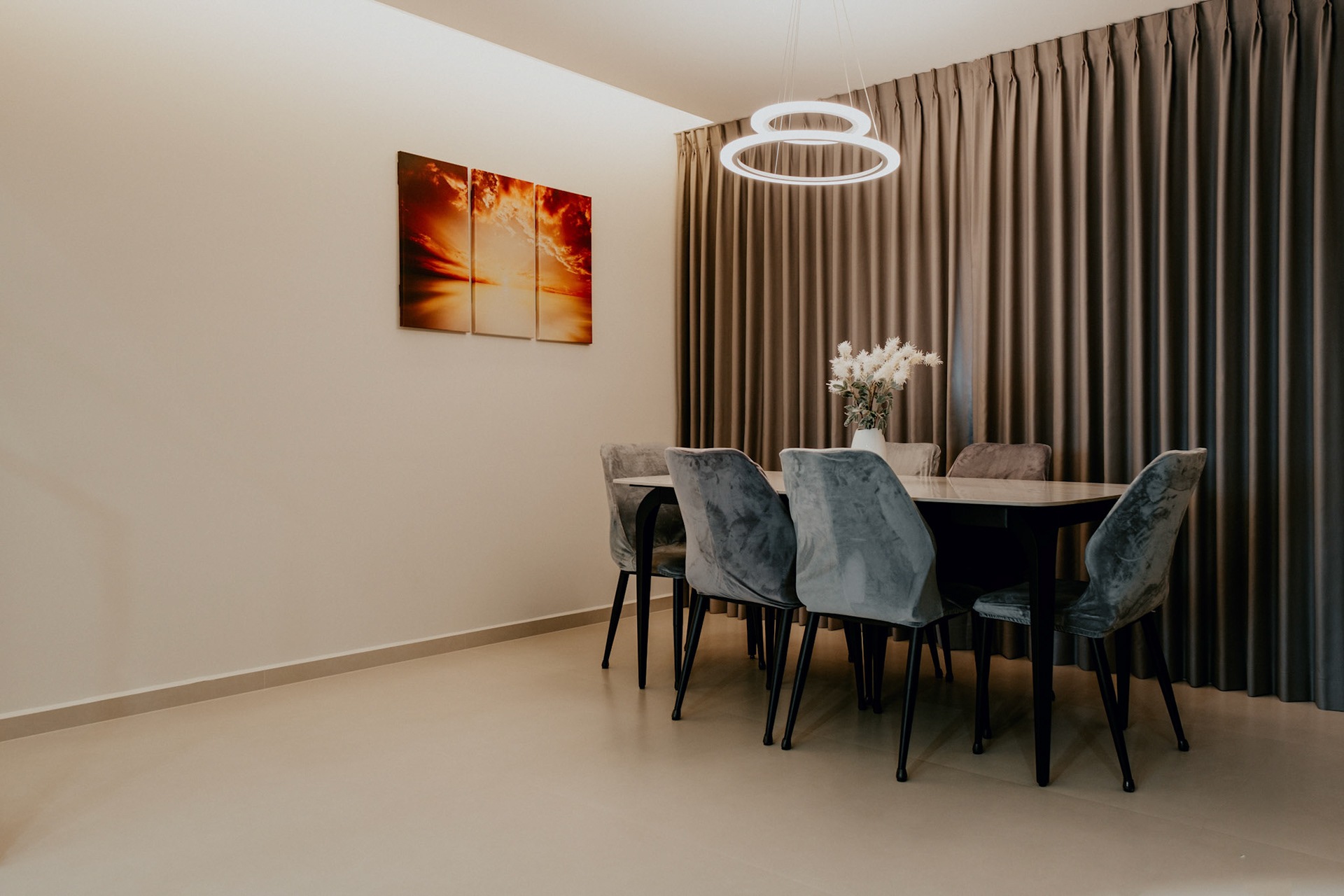 We balance showcasing the full space for portfolios while preserving the designer’s intended mood for marketing.