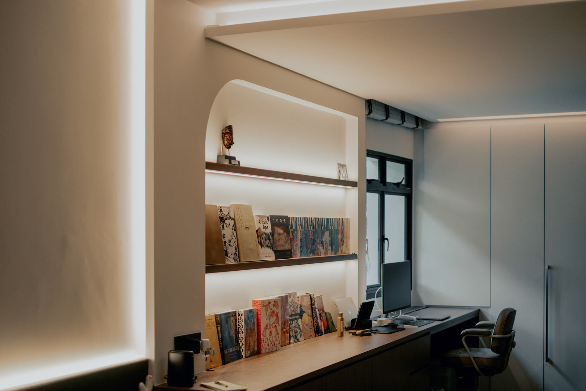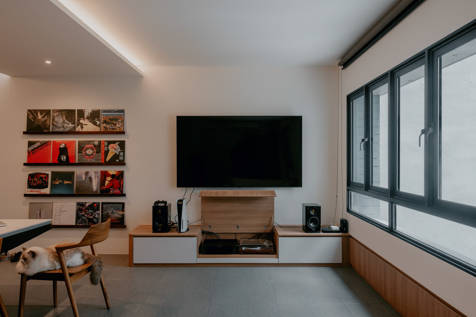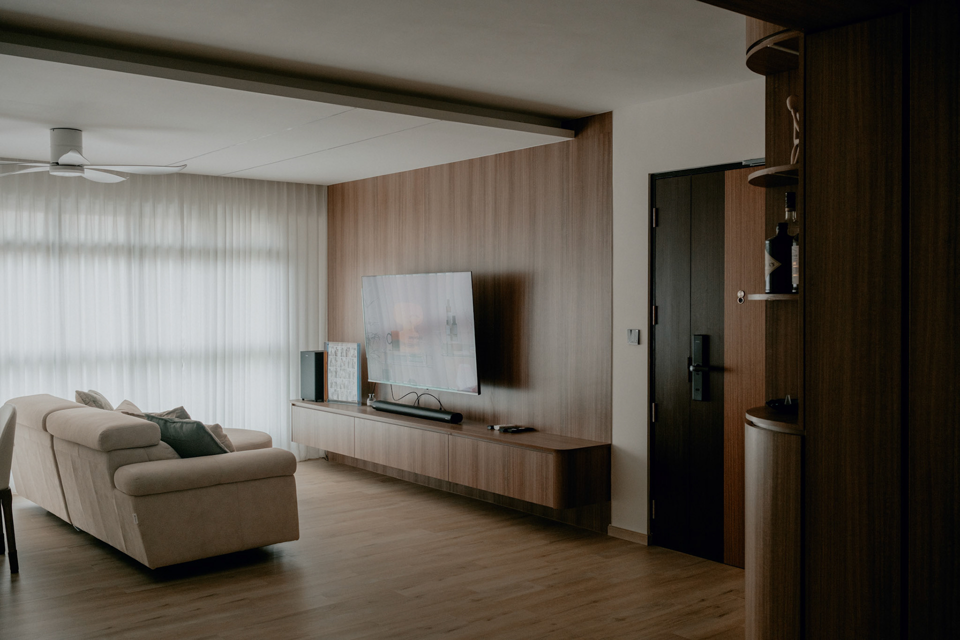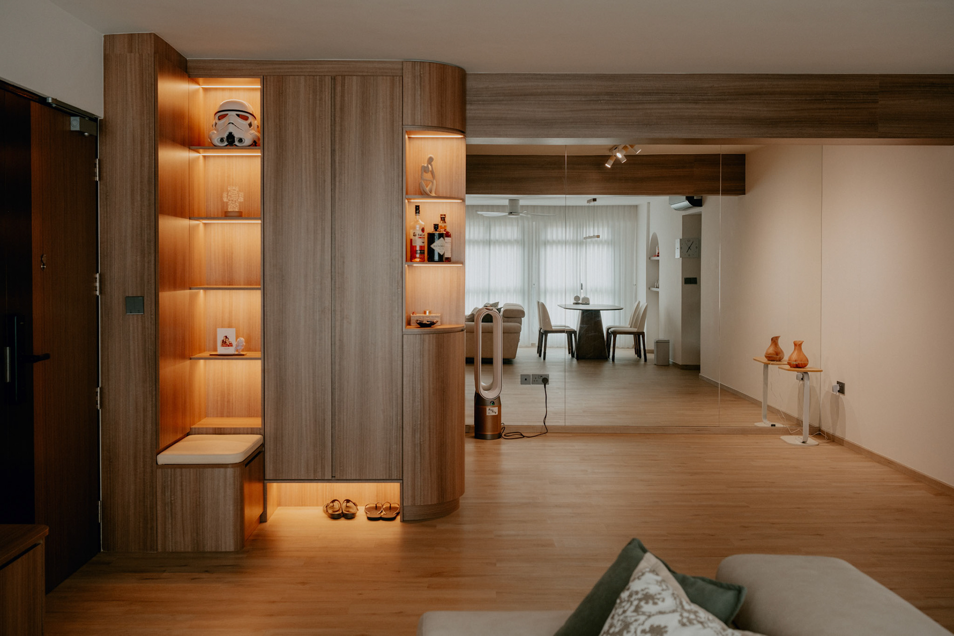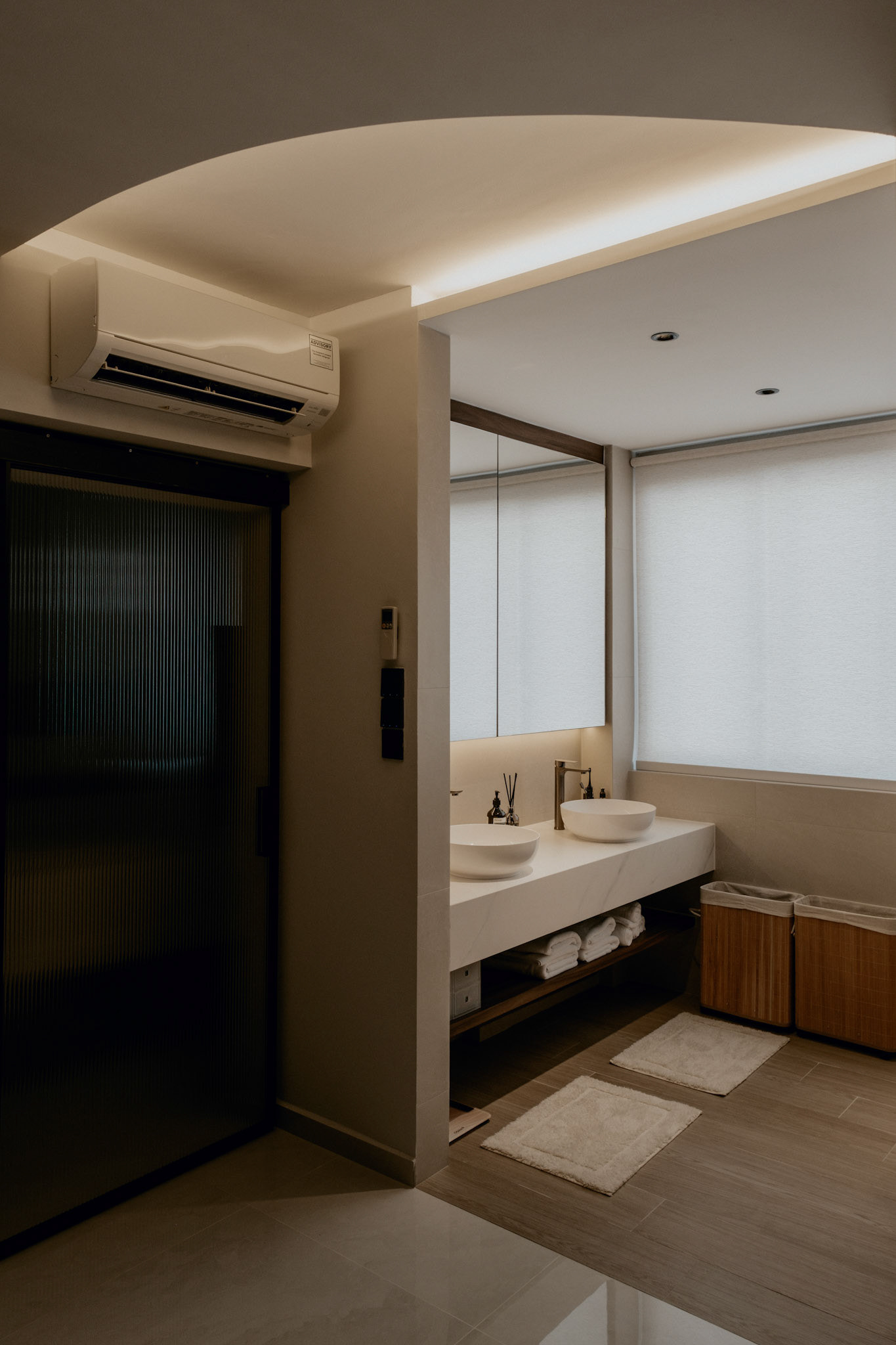 We balance showcasing the full space for portfolios while preserving the designer’s intended mood for marketing.