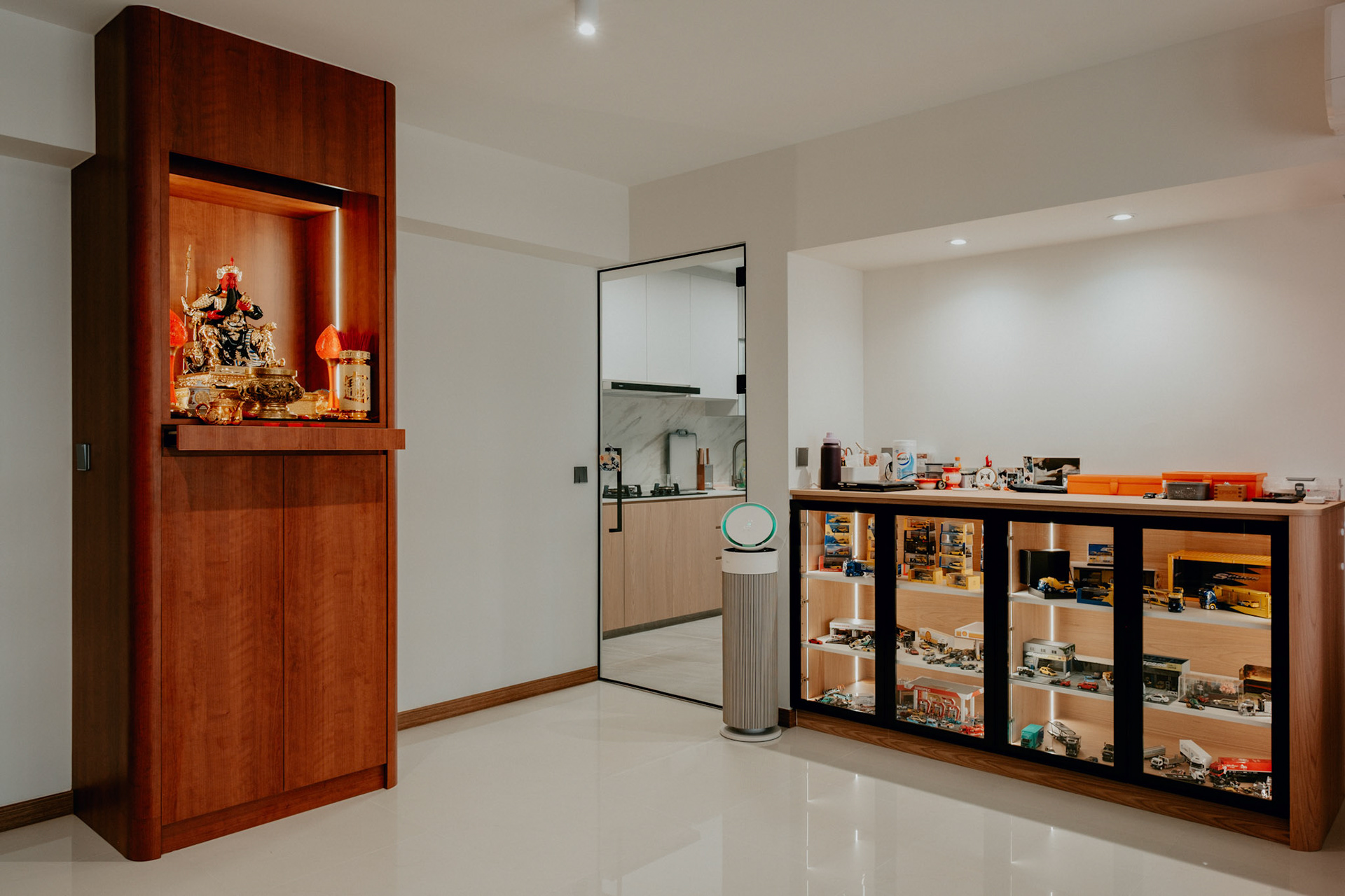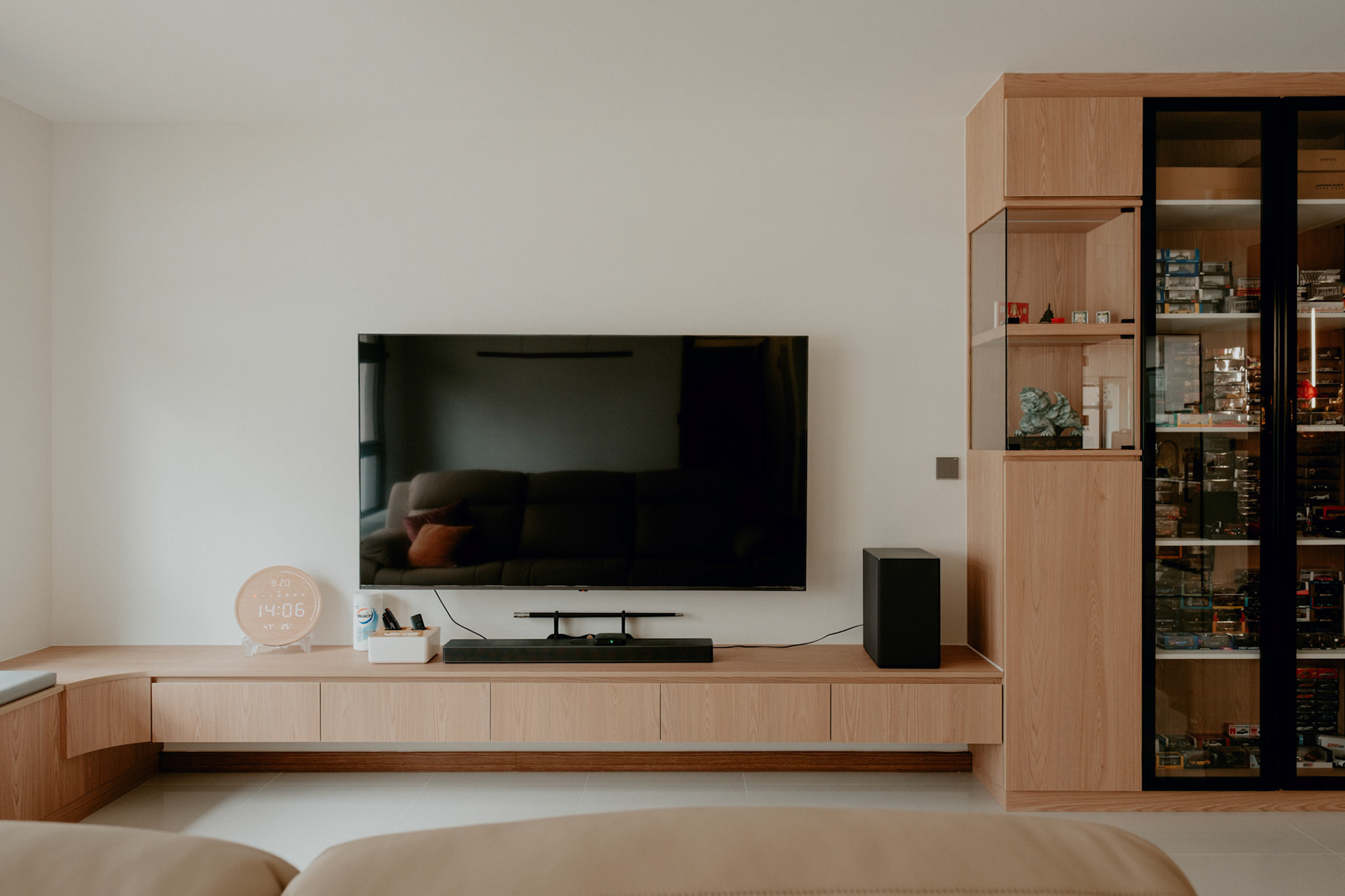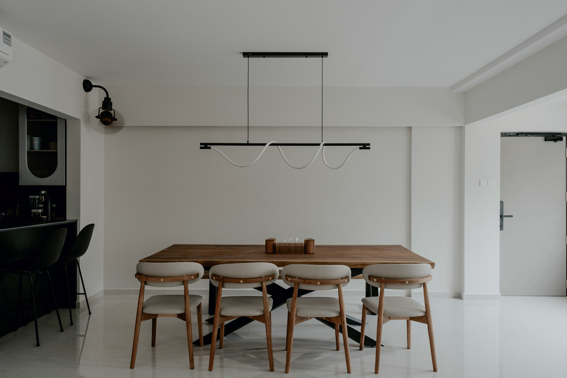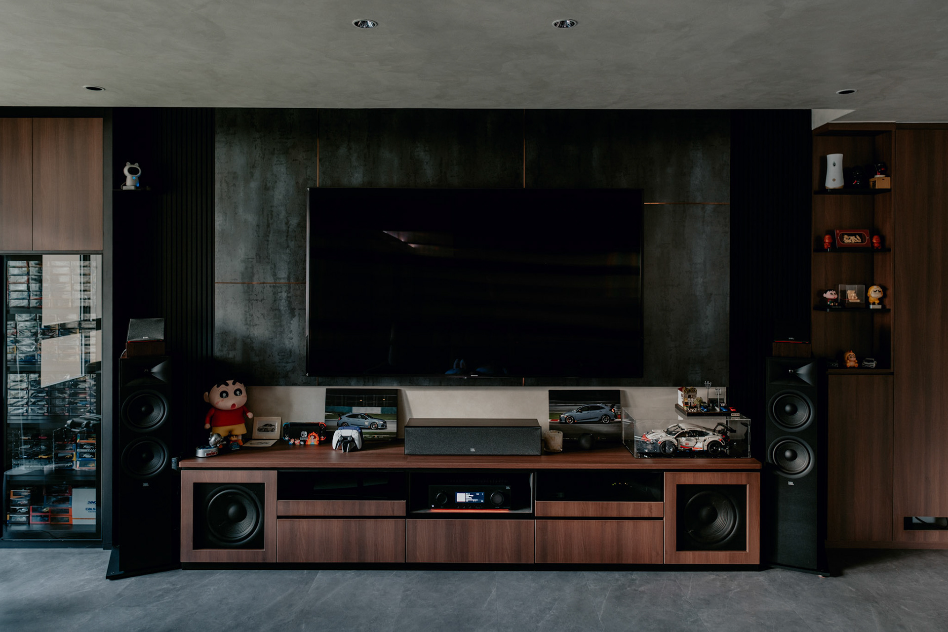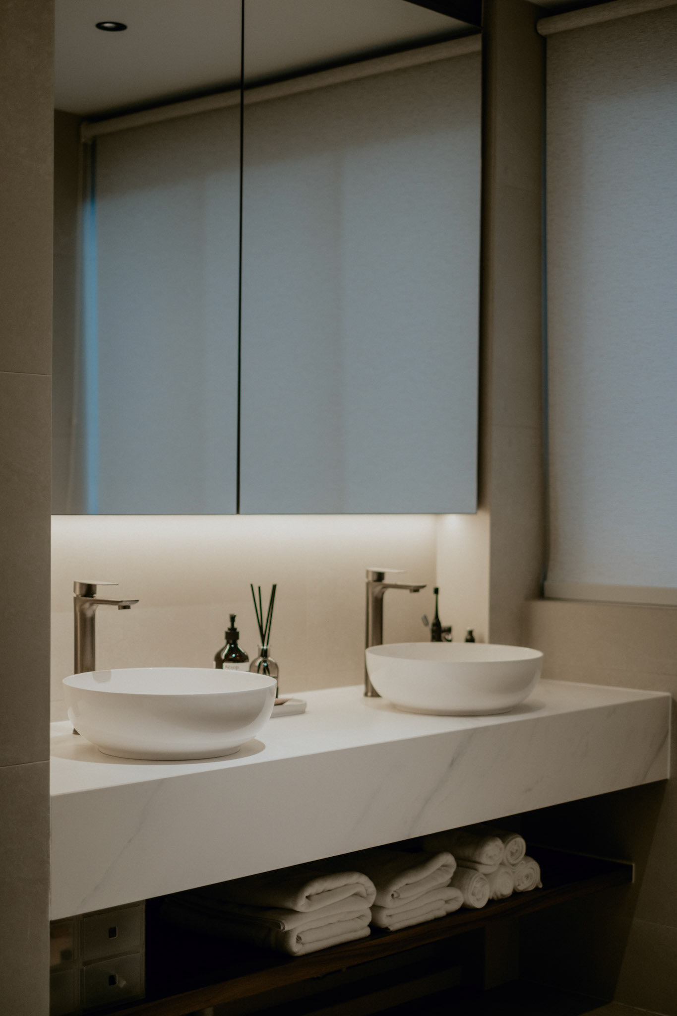 We balance showcasing the full space for portfolios while preserving the designer’s intended mood for marketing.