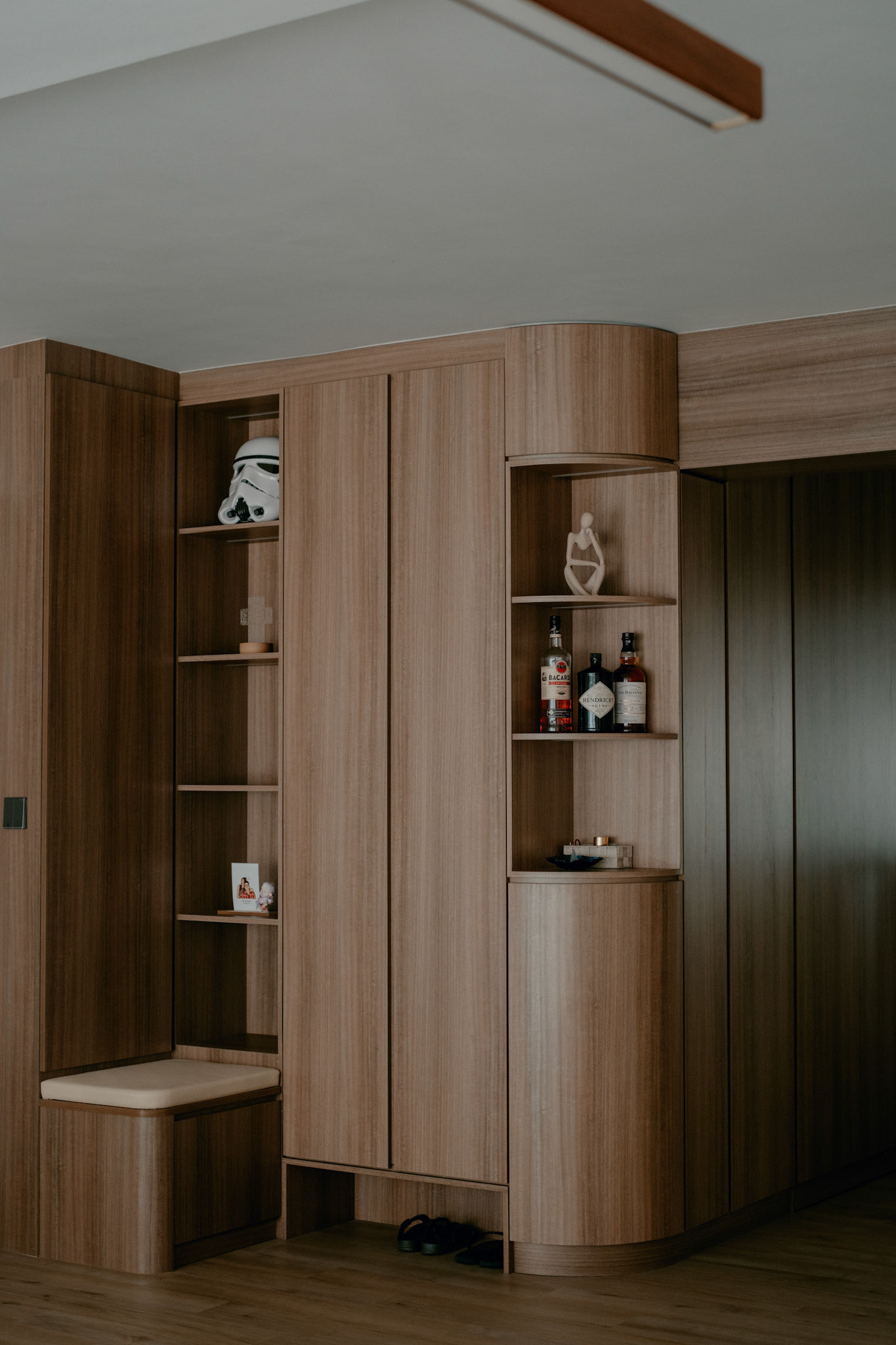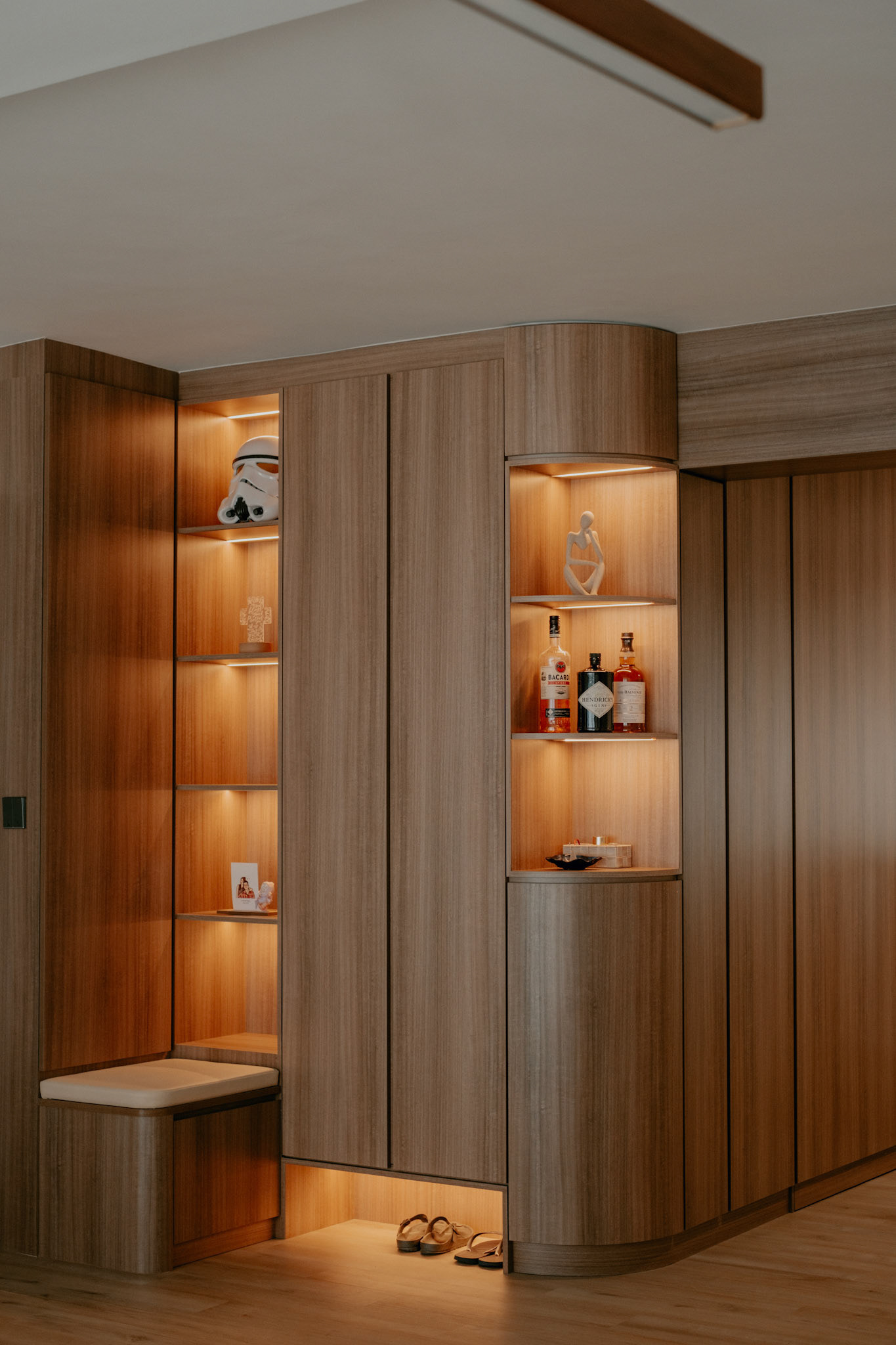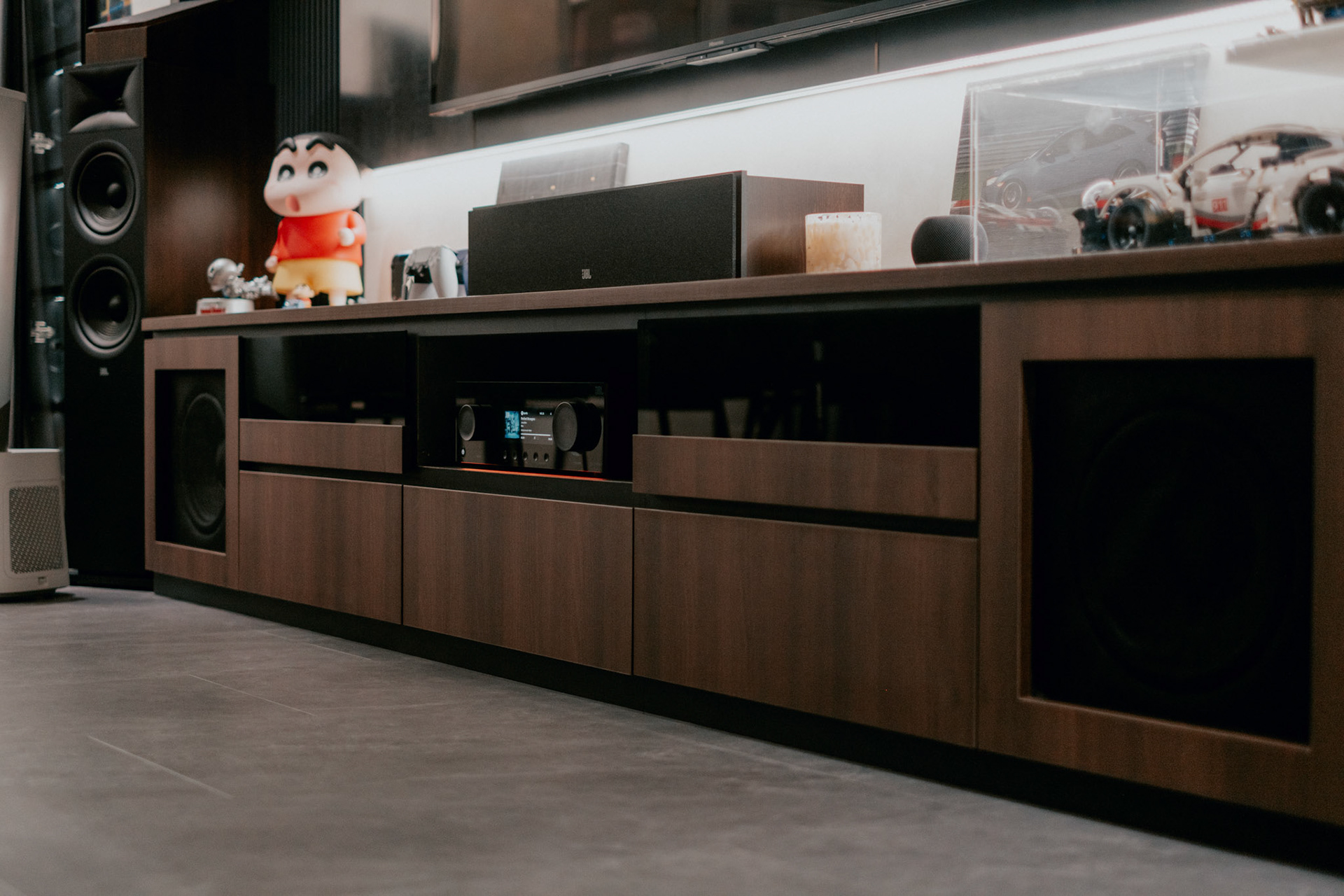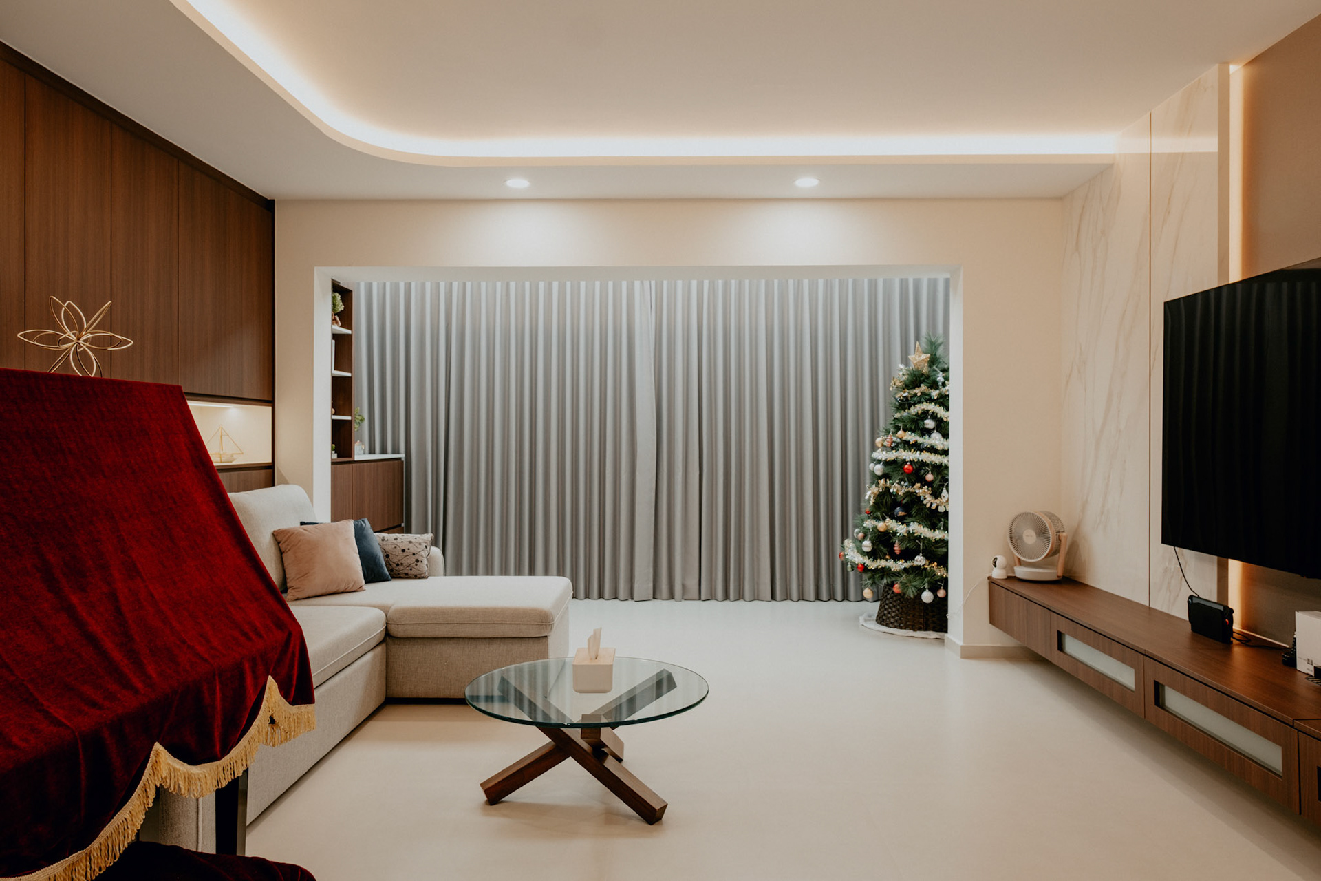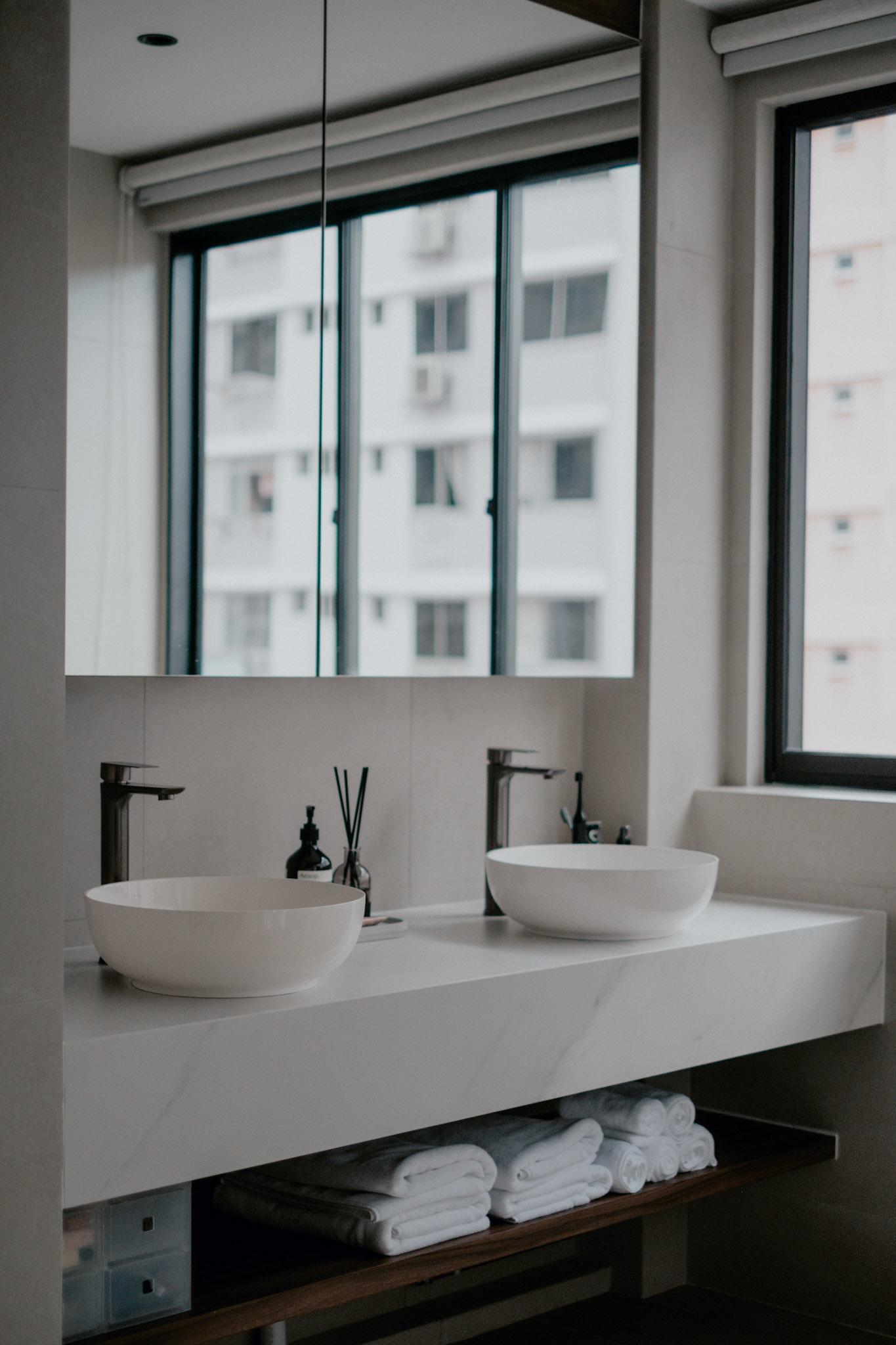 We balance showcasing the full space for portfolios while preserving the designer’s intended mood for marketing.