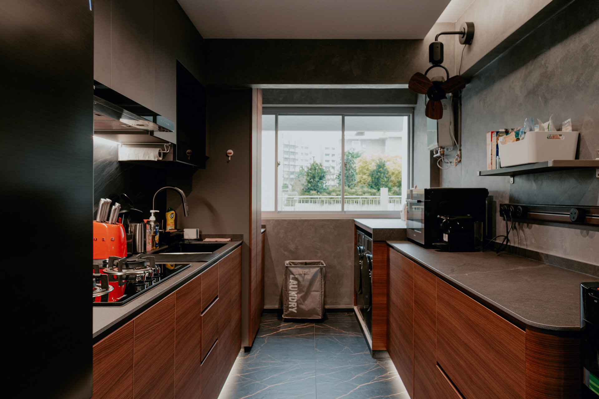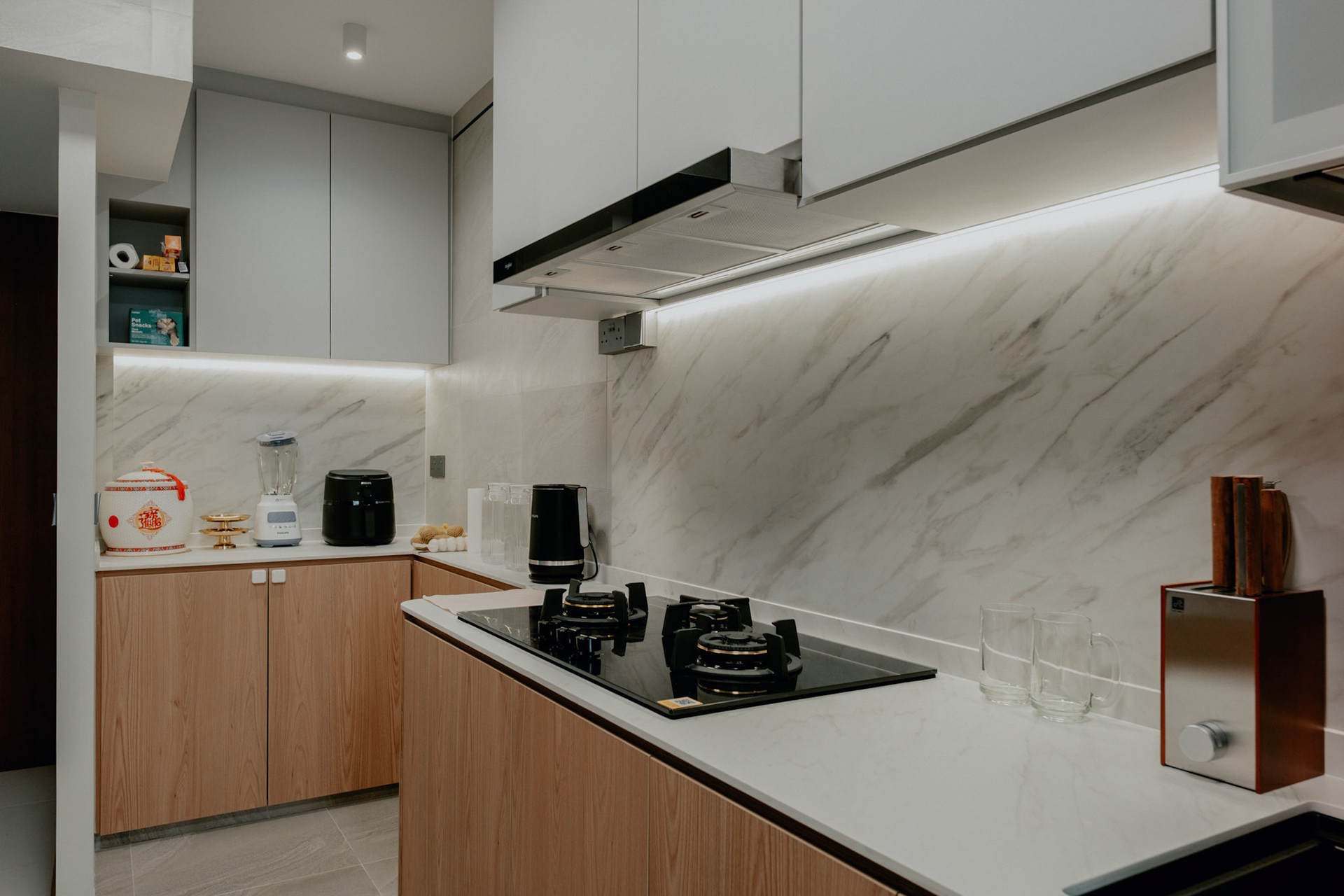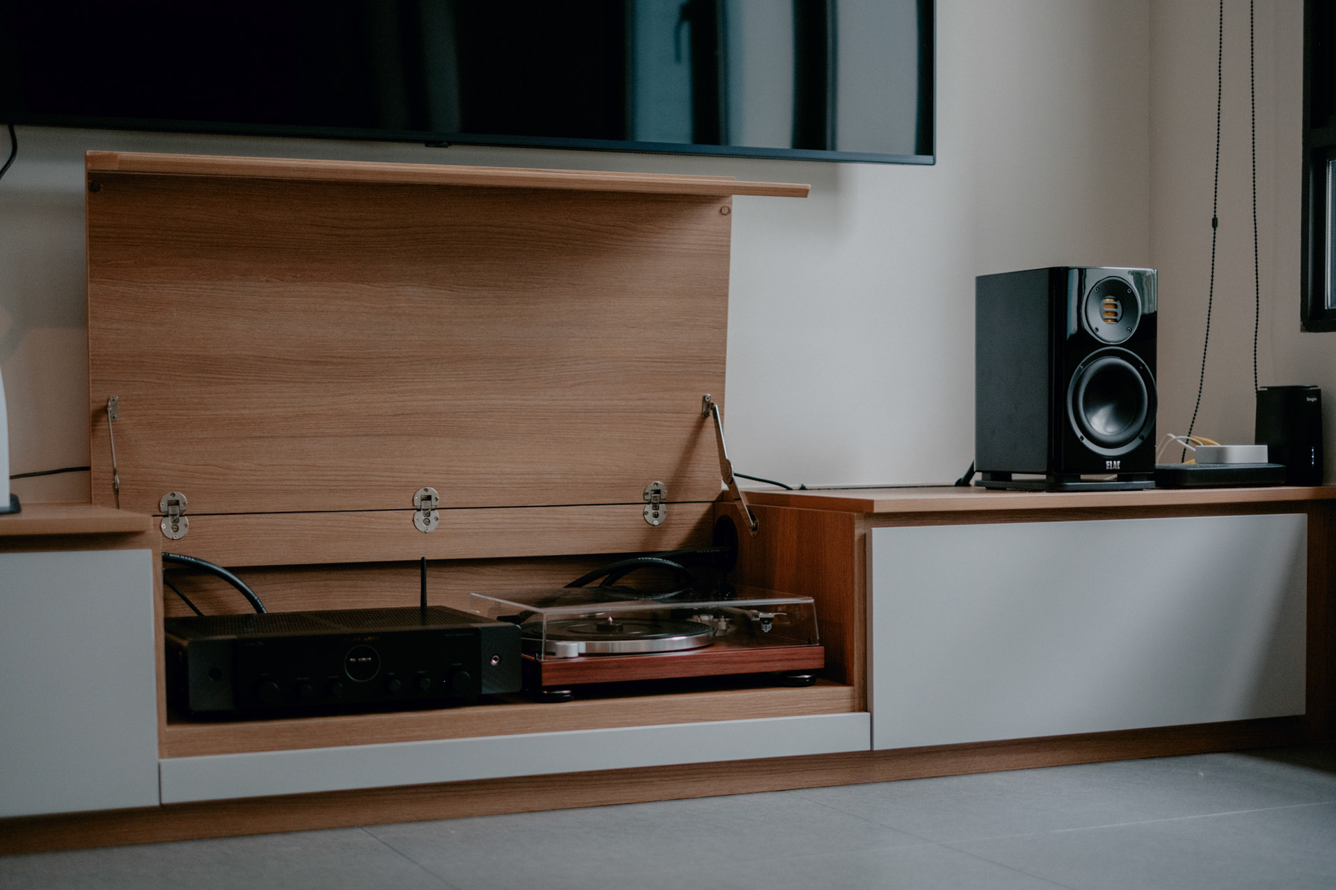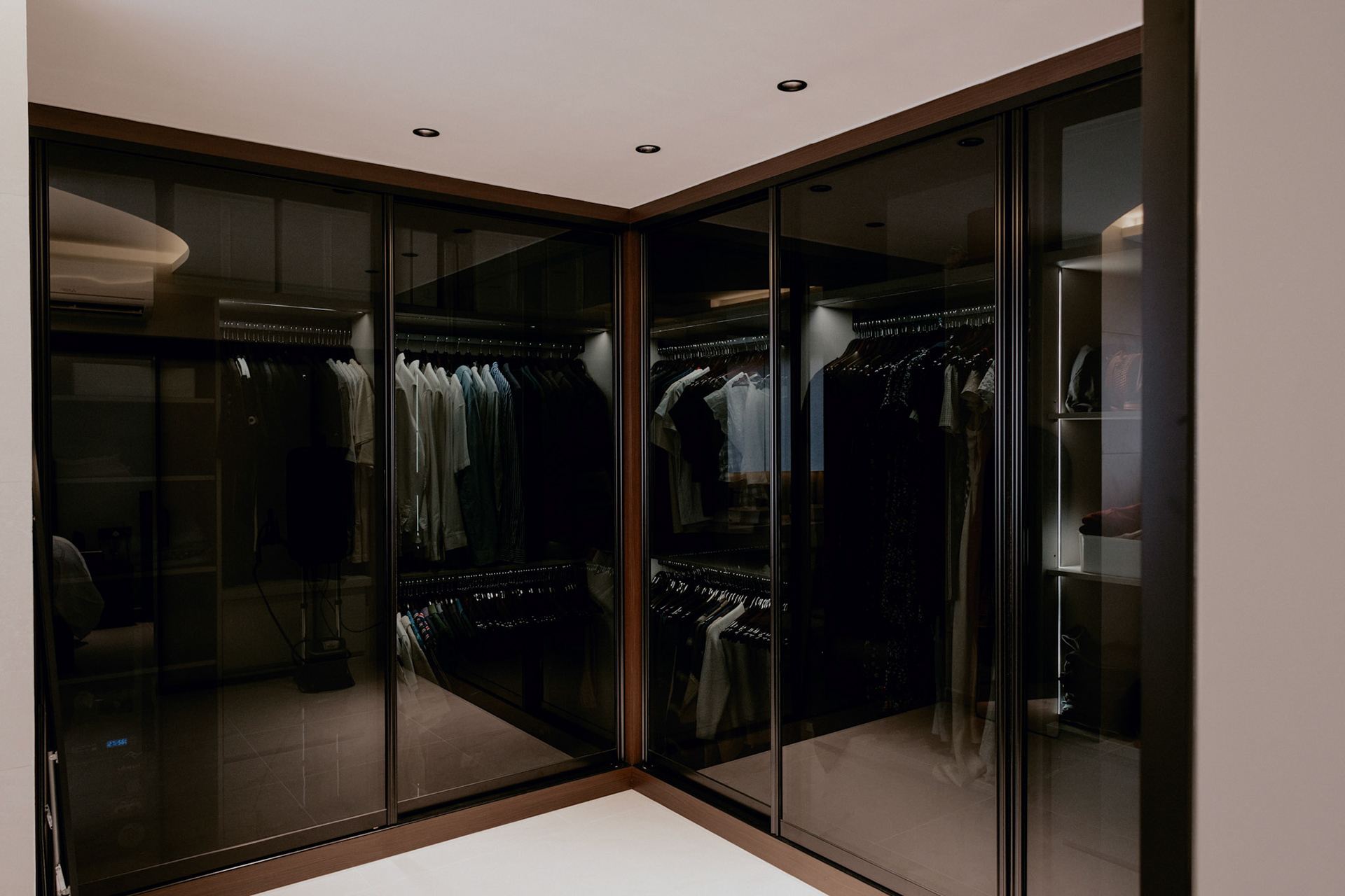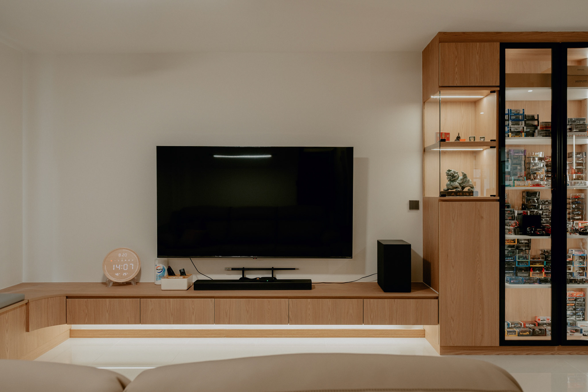 We balance showcasing the full space for portfolios while preserving the designer’s intended mood for marketing.